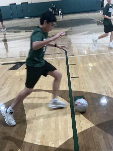 Freshman Damien Castro dribbling the ball during his gym class.Four freshmen having fun during a soccer scrimmage (Matteo Cupello)Two freshmen having a rally of volleyball (Matteo Cupello)A Freshman trying to make a three point in basketball (Matteo Cupello)Freshman boy shooting for another three point, this time from a high angle (Matteo Cupello)
