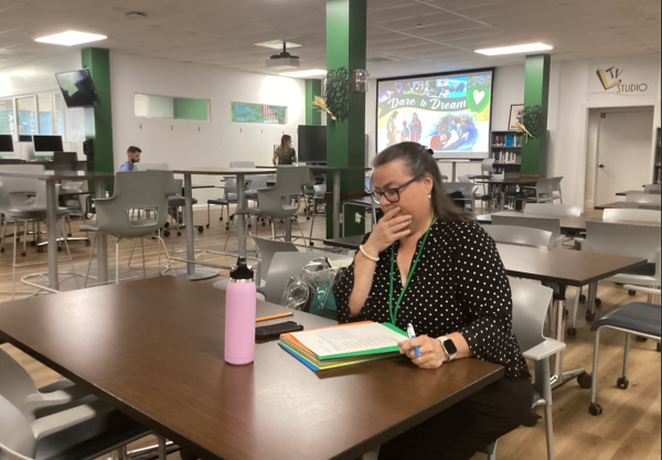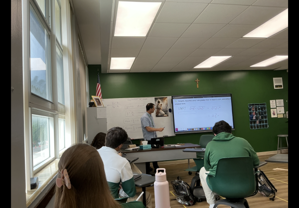 Dr. Cristina Lopez-Hernandez grades students’ work for her Bible class. (Adriana Velasco)Mr. Charles Curry of the Math Department teaches students a lesson in College Algebra. (Adriana Velasco)Fine Arts Chair Ms. Camille Wildenburg guides junior Sophie Yetmimg in art class. (Adriana Velasco)Mr. Charles Curry shares work from teaching a lesson for College Algebra. (Adriana Velasco)Ms. Camille Wildenburg works with senior Conrad Kolk on an art assignment. (Adriana Velasco)