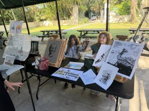 Senior Emma Space and junior Madison Press were advertising the Dual Enrollment Drawing and Painting class, where they are taught by Mrs. Elenqa Capablanca.
